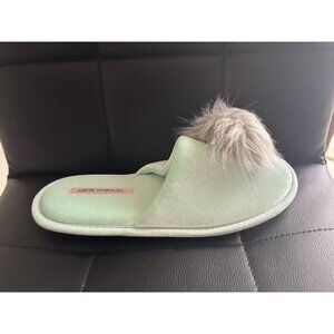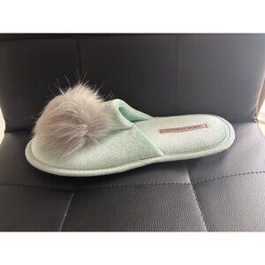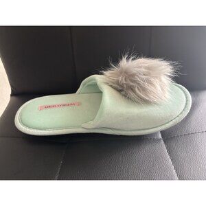 Victoria’s Secret Teal Fuzzy Soft Pom Pom Slippers Sandal Teal Gray Size M (7/8)