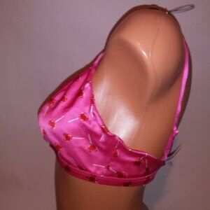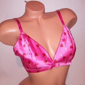 Victoria’s Secret Tease Bralette Bra Medium DD Pink Satin Lollipop Hearts Wirele
