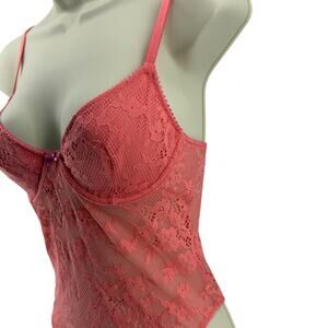 Victoria's Secret Tease Lace Demi Bodysuit Small Orange Pink