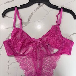 Victoria’s Secret | The Dreamer Hot Pink Open Cup Apron Teddy 4384