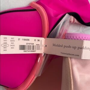 Victoria’s Secret The Flirt Bandeau. Neon pink with black and lavender trim. Bra sized- 34D. Molded push up padding. NWT. Strap included. Smoke free home.