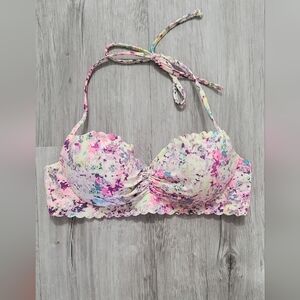 Victorias Secret The Getaway Floral Ruffle Halter Tie Bikini Top Size 34B
