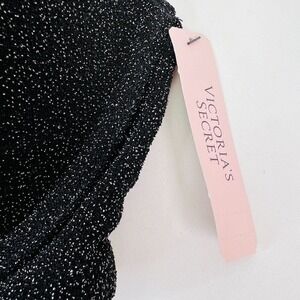 Victoria's Secret The Icon Push Up Bikini Top Padded Bra in size 34DD and black color is a strapless underwired bra with a striped pattern. It is designed to provide a push-up effect and features padding for added comfort. The bra is part of the Victoria's Secret Very Sexy product line and has the Angel theme.