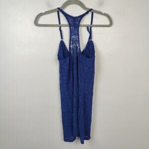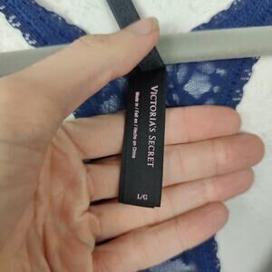 Victoria's Secret The Lacie Babydoll V-String Set Womens Large Navy Blue Lace