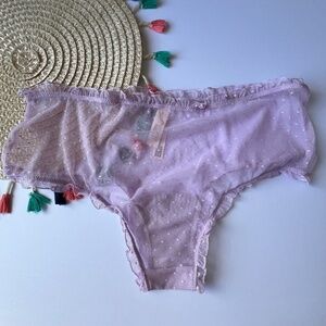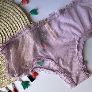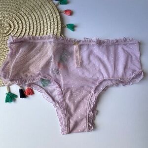 Victoria's Secret The Lacie Dot Mesh Ruffled Cheeky Panty Hope Lilac XL NEW