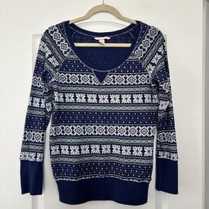 Victorias Secret Thermal Pajama Set Fair Isle Snowflake Print Womens Size M Blue