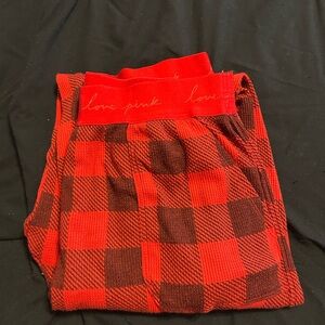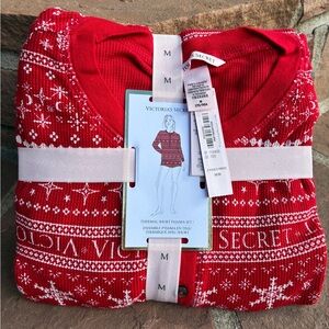 Cozy Victoria’s Secret thermal pajama set featuring a festive red Fair Isle pattern.