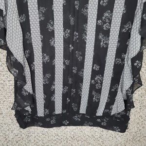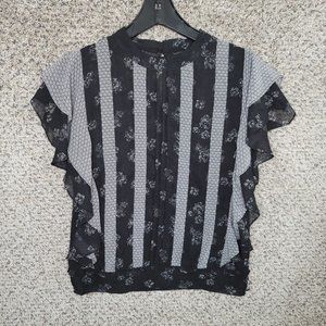 Victorias Secret Top Womens Small Black Sheer Ruffle Blouse Keyhole Button