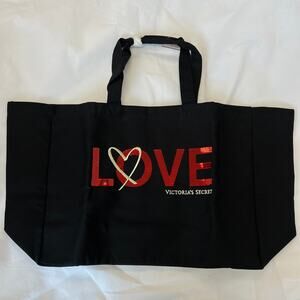 Victoria’s Secret Tote Bag Black & Red Sequin Love Bling Rhinestone Carryall Weekender