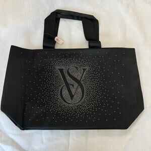 Victoria’s Secret Tote Bag Black Shine Bling Rhinestone Logo Carryall Weekender