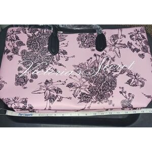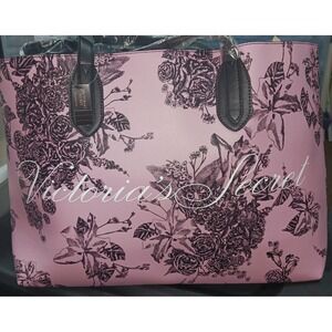 Victoria's Secret Tote Bag, Pink with Black Floral Design, 16 x 11.5 x 5