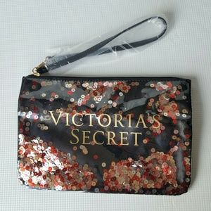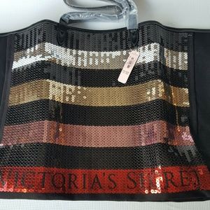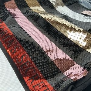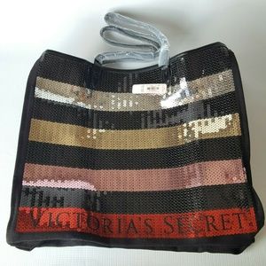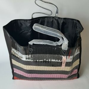 Victoria’s Secret Carryall Tote Bag With Bling Sequins Striped With Cosmetic Pouch.
