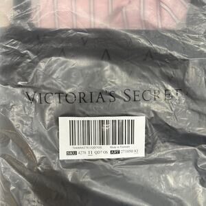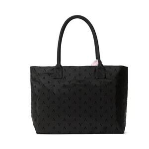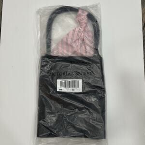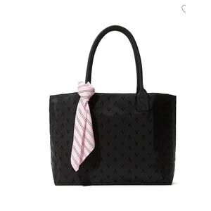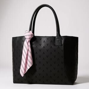 Description: Chic and versatile, this Victoria’s Secret tote is crafted in black embossed allover "V" logo texture. Paired with a pink striped scarf tied at the handle, this elegant set is perfect for everyday use or gifting. Lightweight and roomy, it carries your essentials in elevated style.