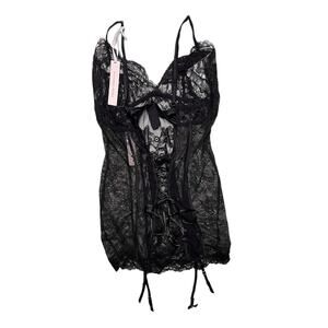 Victoria's Secret Triangle Lace Up Garter Slip Black Lingerie Size Large
