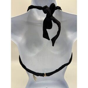 Victoria's Secret Tropical Halter Bikini Top Womens L Black Plunge Neck Summer