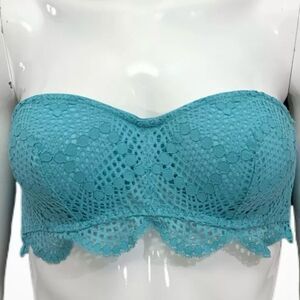 Victoria's Secret Turquoise Mesh Lace Strapless Bralette Bra Women's Size Medium