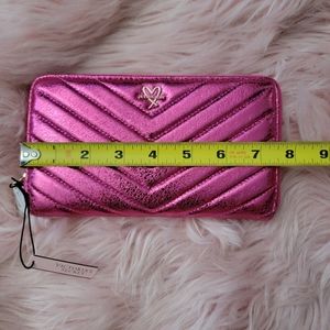 Victoria's Secret V quilt pink metallic crackle wallet