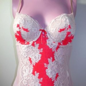 The seductive must-have. Exclusive limited-edition lace, only at Victoria’s Secret. Beautiful, highly textured lace with striking contrast border creates a super-sexy, opulent look. Show off your romantic side with where lacy meets racy. Adjustable straps. Removable, adjustable garters. Lightly lined underwire cups