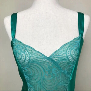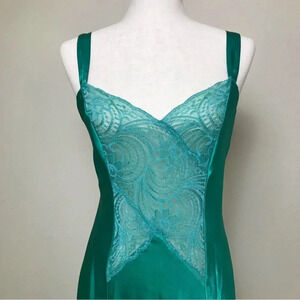 Victoria’s Secret VINTAGE GOLD LABEL Satin Lace Maxi Slip Dress Size Small Green