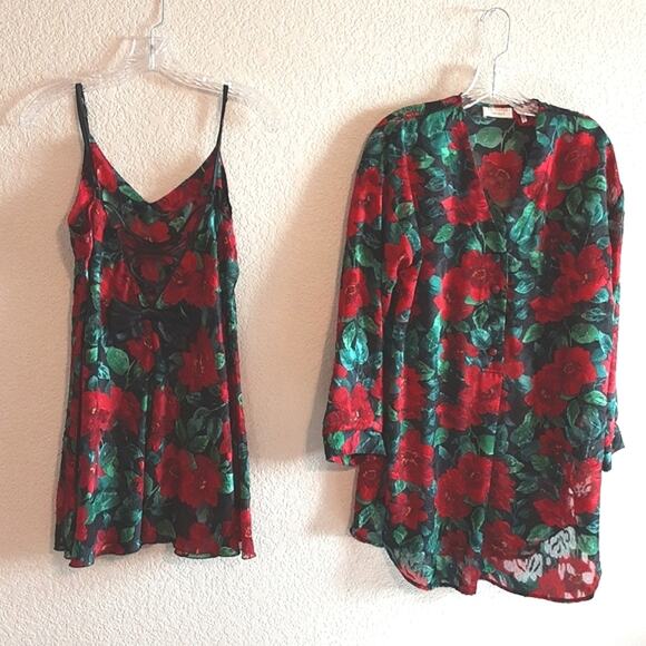 Victoria's Secret VINTAGE Gold Tag Matching Holiday Bow Negligé L + SleepShirt M