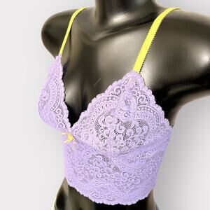 Victoria’s Secret VINTAGE Longline Lace Bralette Womens M Purple Coquette Pastel