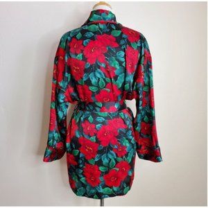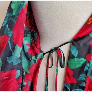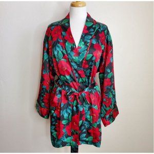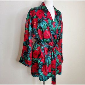 Victoria's Secret VINTAGE Robe OS red black green floral Gold label