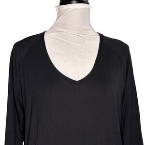 Victoria's Secret V-Neck French Terry Long Sleeve Top Black Size Large
