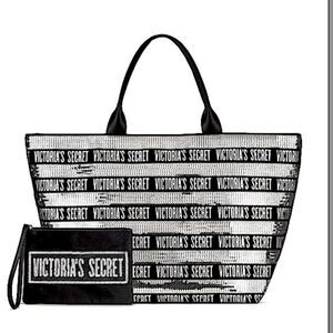 ✨ 🆕 ✨Victoria’s Secret VS Black & Silver Sequin Logo Tote Bag + Wristlet Set✨
