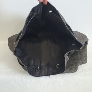 Victoria's Secret VS Bucket Backpack Black Silver Glitter Drawstring Tote Bag