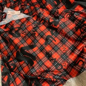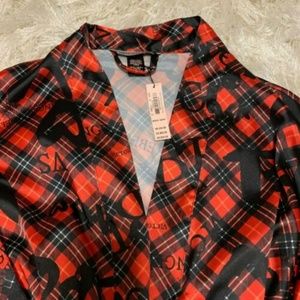 Victoria's Secret Red/Black VS Logo Plaid Satin Robe