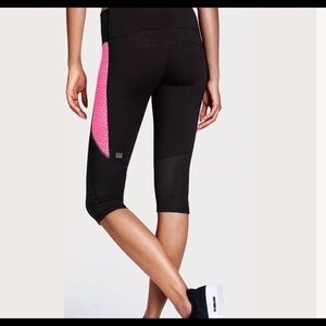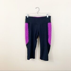 Victorias Secret VSX Knockout Crop Capri Medium Purple Black Laser Cut. Excellent pre-owned condition. Minimal signs of wear.
