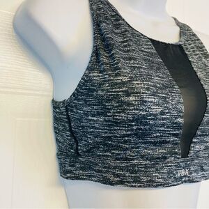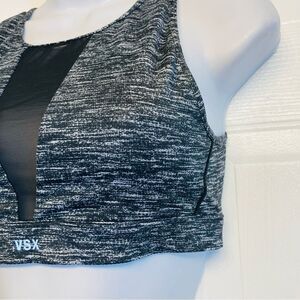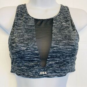 Victoria’s Secret VSX Mesh Cut Out Back V Neck Front Sports Bra Small Gray Black