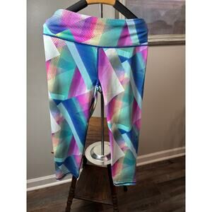 VSX Victoria’s Secret Sport Size XS Knockout Crop Capri Leggings Multicolor geometric print. Excellent used condition. Like new! No rips holes or stains. 76% polyamide 24% Lycra elastane. Has interior drawstring and hidden pocket in waistband