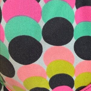 Vibrant polka dot sports bra with strappy back. Features flexible underwire and hook back closure. Gently used.