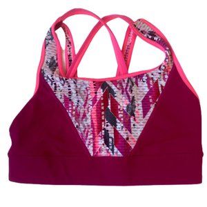 VSX ~ Victoria's Secret sports bra with no padding. Magenta pink with bright pink trim and a geometric pattern.