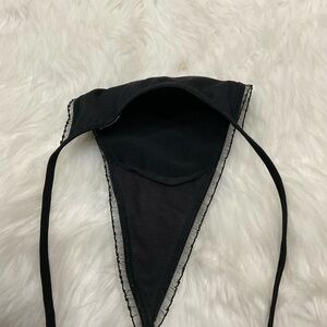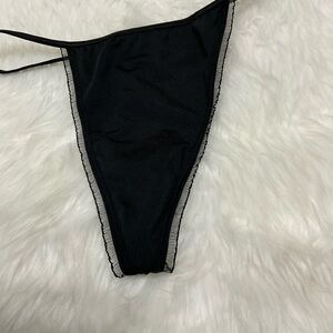 Victoria's Secret V-String Thong Black M/L Satin Bling Back Butterfly Charm