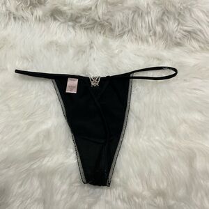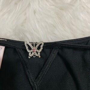 Victoria's Secret V-String Thong Black Bling Butterfly Charm