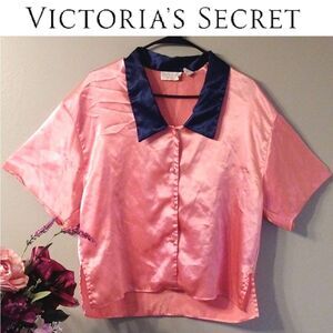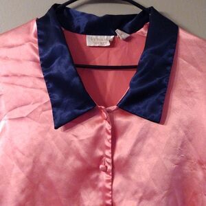 Victoria's Secret VTG 80s Pink Blue Satin Button Down Blouse Oversized Small