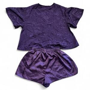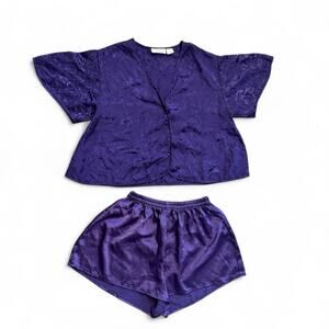 Victorias Secret VTG Gold Label Satin Pajama Set S\M Purple Floral Jacquard 90s