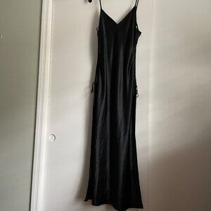 Victoria’s Secret VTG Satin Maxi Slip Dress Size L Black Gown Open Lace Up Sides