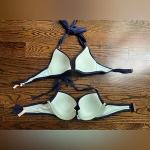 Victoria’s Secret VTG swimsuit set of 3 pieces (2 tops 1 bikini) navy Sz. S