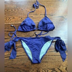 Victoria’s Secret VTG swimsuit set ruffled triangle top and bikini w ties Sz. M