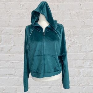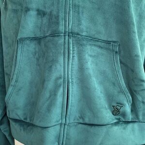 NWT Victoria's Secret On Point Sweatsuit Cropped Teal Velvet Velour Full Zip Up Hoodie Rhinestones Tracksuit Top