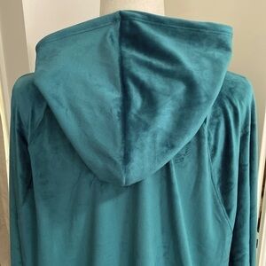 Beautiful teal cropped on point velour hooded zip up with rhinestone detail on sides of chest