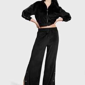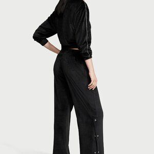 Victoria's Secret Velour Lux Diamante Wide-Leg Snap Lounge Pants BLACK Medium