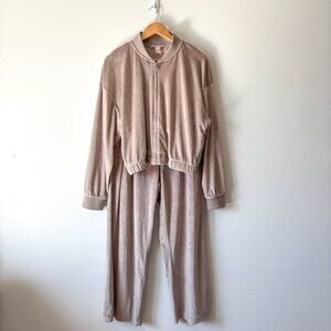 Victoria's Secret Velour High Rise Wide Leg Pants + Sweater Tracksuit SET Large