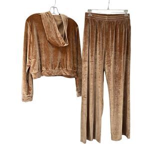 Victorias Secret Velour Track Suit Set Tan Size L XL Rhinestone Logo Lounge