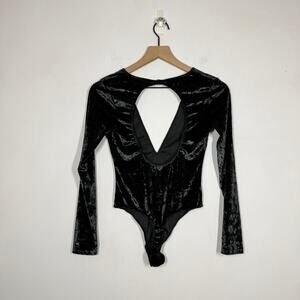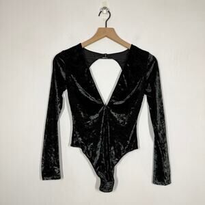 Victoria's Secret Velvet Bodysuit Size XS S Dark Green Open Back V Neck Pull On