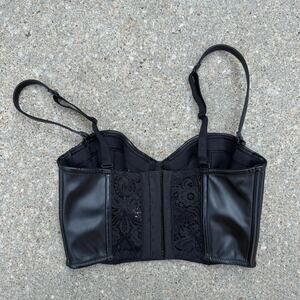 Victoria's Secret Very Sexy Balconet Bustier Bra Faux Leather Lace 32B Black