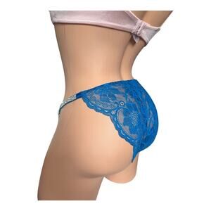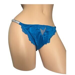 Victoria's Secret Very Sexy Bombshell Shine Cheeky Panty blue lace crystals XL